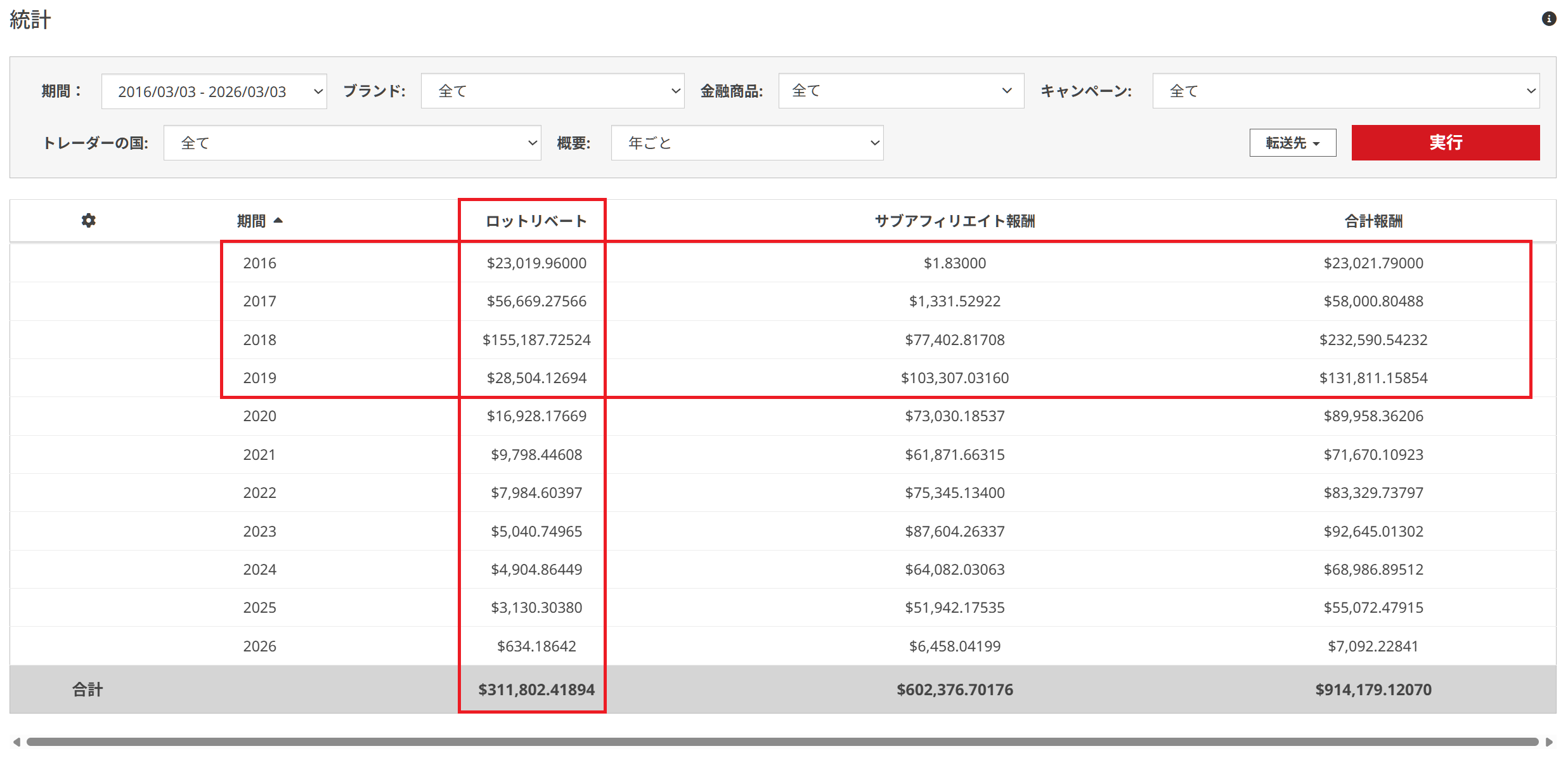 これは極端な例だが、トレーダーを多く集客してトレードしてもらうことで、小さな報酬でもチリ積もで相当な金額になる。軌道に乗ると数十万円位はすぐに稼げるようになるし、上記画像のような大口のトレーダーがお客さんになってくれる可能性もあるので、稼げるときは桁違いに稼げるのがXMアフィリエイトの面白さだと思う。