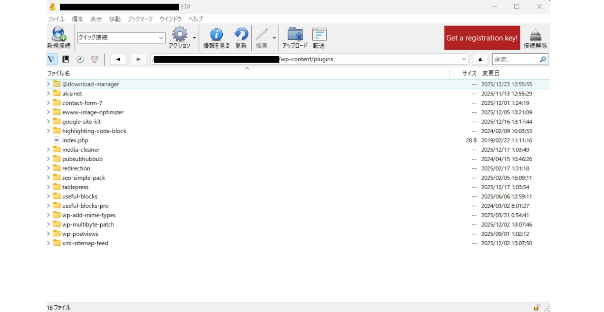 /wp-content/pluginsにアクセスします。 - 該当プラグインをリネームします。